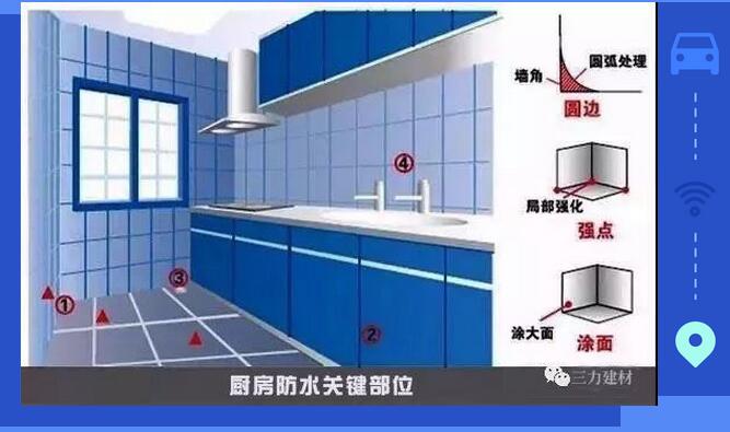 廚房的防水也不能忽視,墻面和地面都要進(jìn)行防水處理。對于有地漏的廚房來說,地面一定要進(jìn)行防水處理,地漏和管根要重點(diǎn)處理。沒地漏的的廚房地面上原則上也應(yīng)做防水處理,以防止水池濺水滲漏。一般廚房前面至少做30mm的防水,墻與地面之間的接縫處也要處理好。