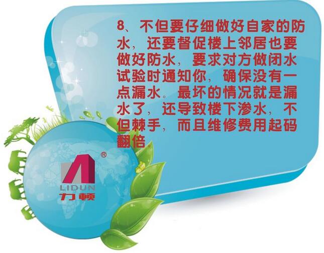 力頓防水給大家全方位解決漏水、滲水的問題,且綠色環(huán)保、使用方便,用的放心、住的放心!