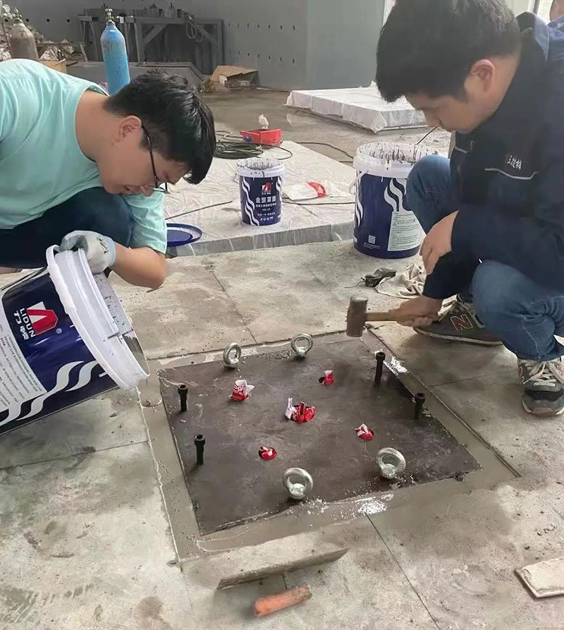 利用金罡罩面高流動(dòng)性與超強(qiáng)粘接,自動(dòng)填補(bǔ)縫隙、達(dá)到加固基座的要求