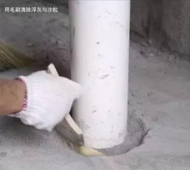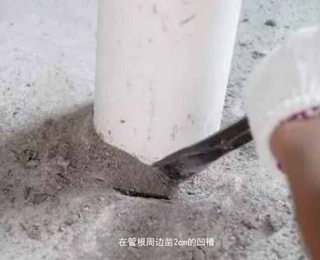 ②管根四周宜形成凹槽,將管根周圍及凹槽內(nèi)清理干凈。