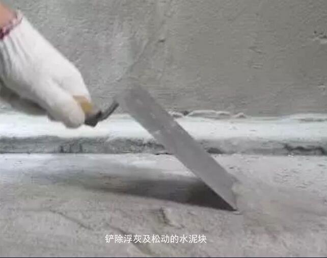 1、基層處理:無明顯水跡,滲漏處先進(jìn)行堵漏處理;基層表面無浮土、砂粒等污物,表面應(yīng)平整、無松動;陰陽角半徑磨成光滑的小圓角,表面也應(yīng)無松動。