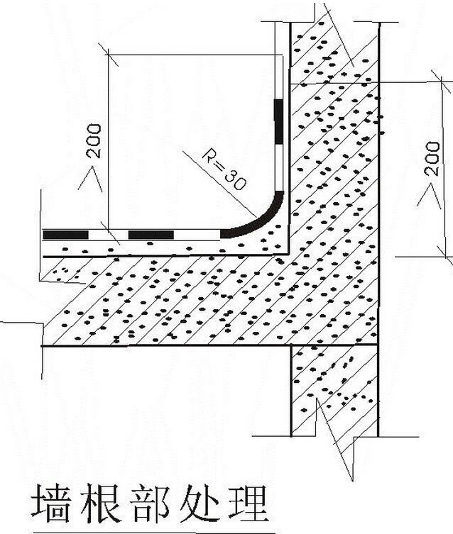 高出衛(wèi)生間樓面應(yīng)澆混凝土100mm,并與梁或樓面混凝土整澆。做粉刷時,根部做成R=30mm小圓角。